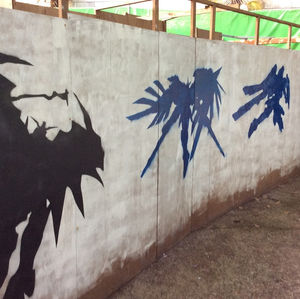 スタッフの遊び心満載のバリケード
